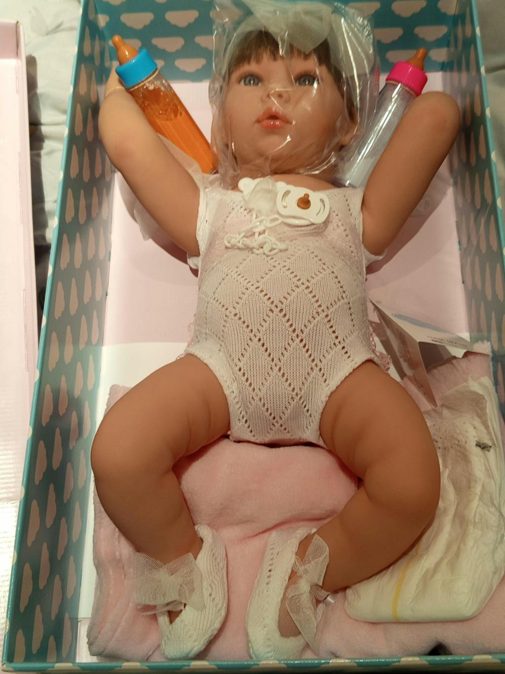 🎁 Incluye: Chupete a medida, 2 biberones mágicos, manta rosa, pañal, certificado y caja de gran calidad.